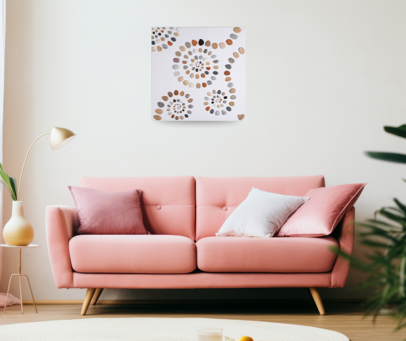 יצירה אמנותית מקורית, טבעית וייחודית, המשלבת אבנים שנבחרו בקפידה ושובצו בקומפוזיציה הרמונית על קנבס לבן, ומביאות לכל חלל שבו יוצבו תחושת שלווה פנימית, חיבור לאדמה ואיזון.